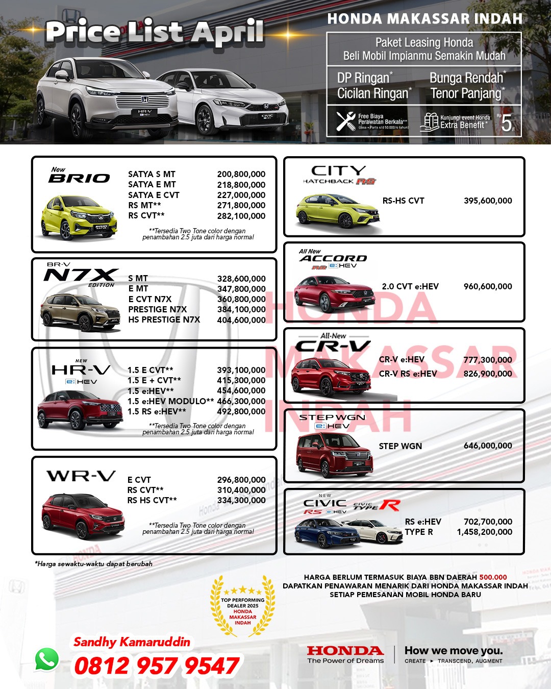 | HONDA BRIO S M/T | IDR 200.800.000 |